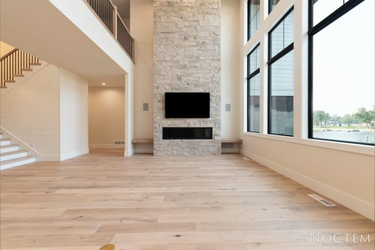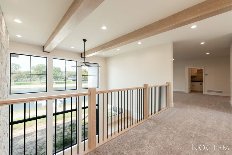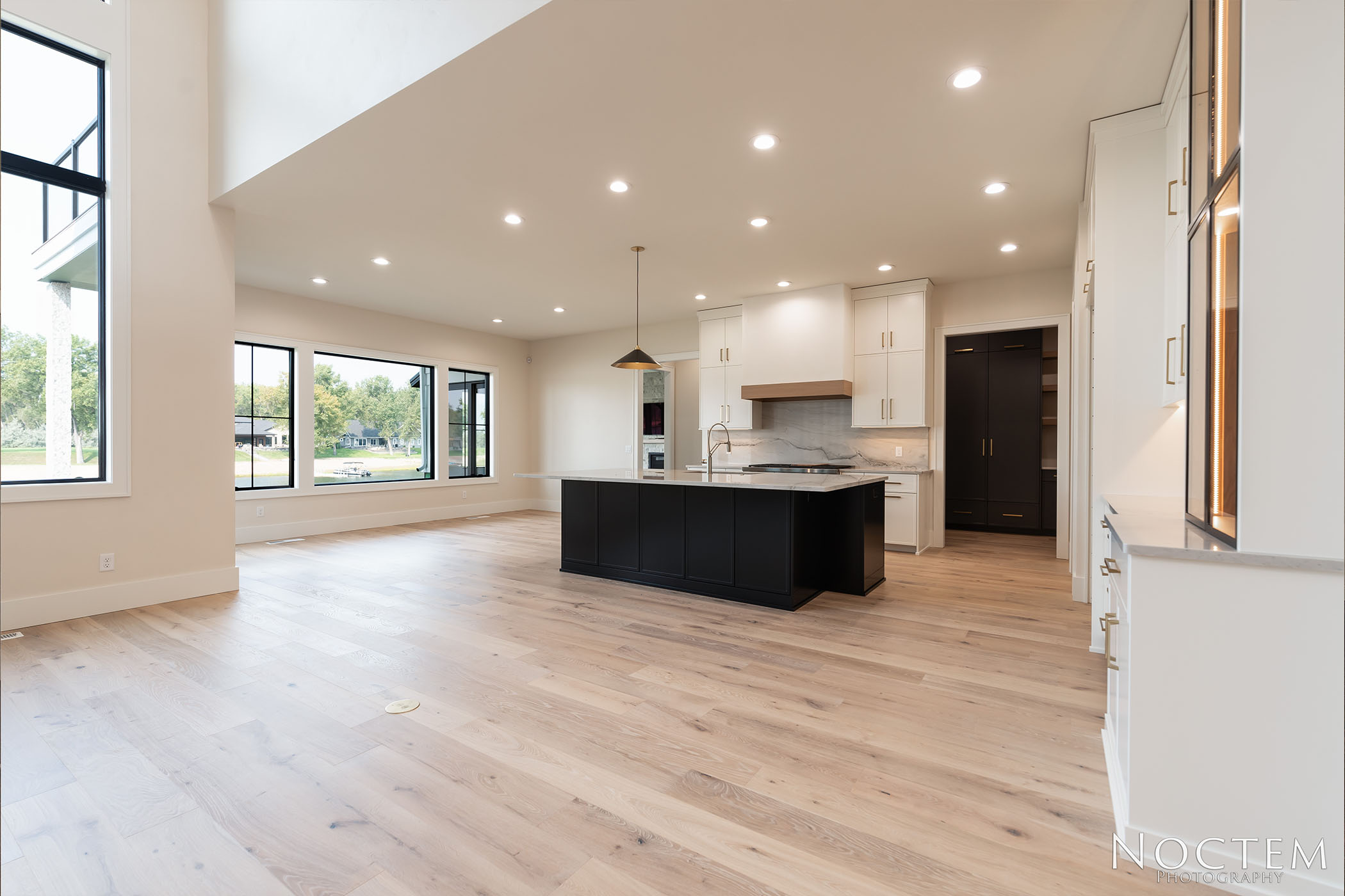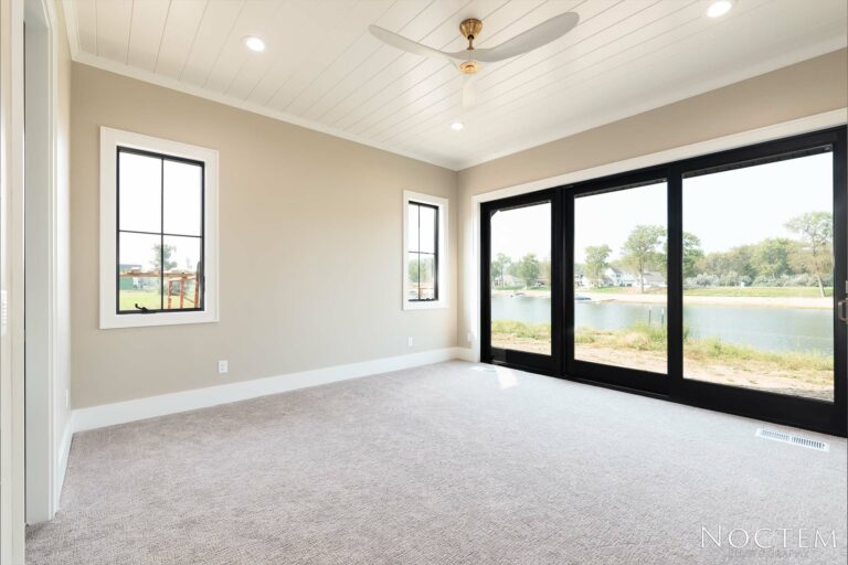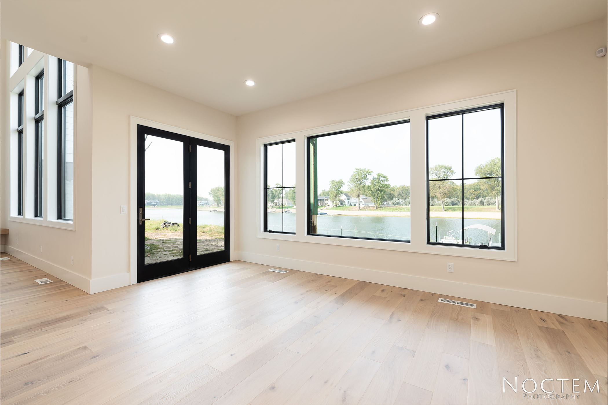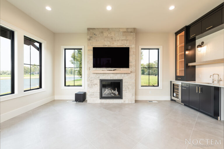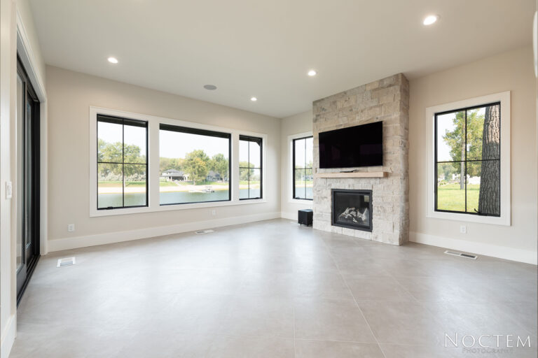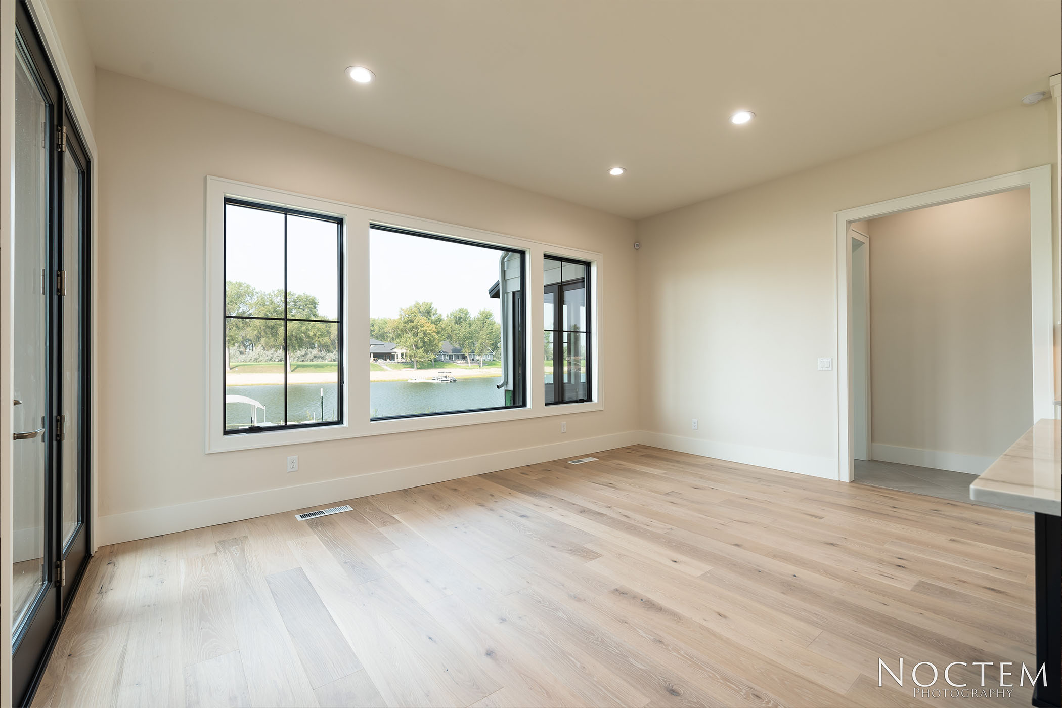 Showcasing a modern, custom home on a premier Bismarck bayfront lot—clean lines, upscale finishes, and expansive water views that bring contemporary style and relaxed comfort together beautifully.
