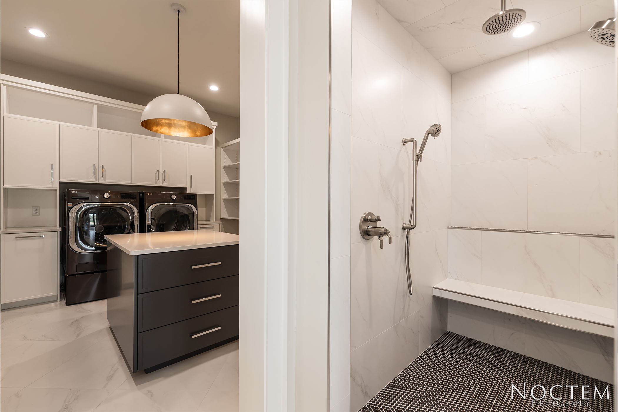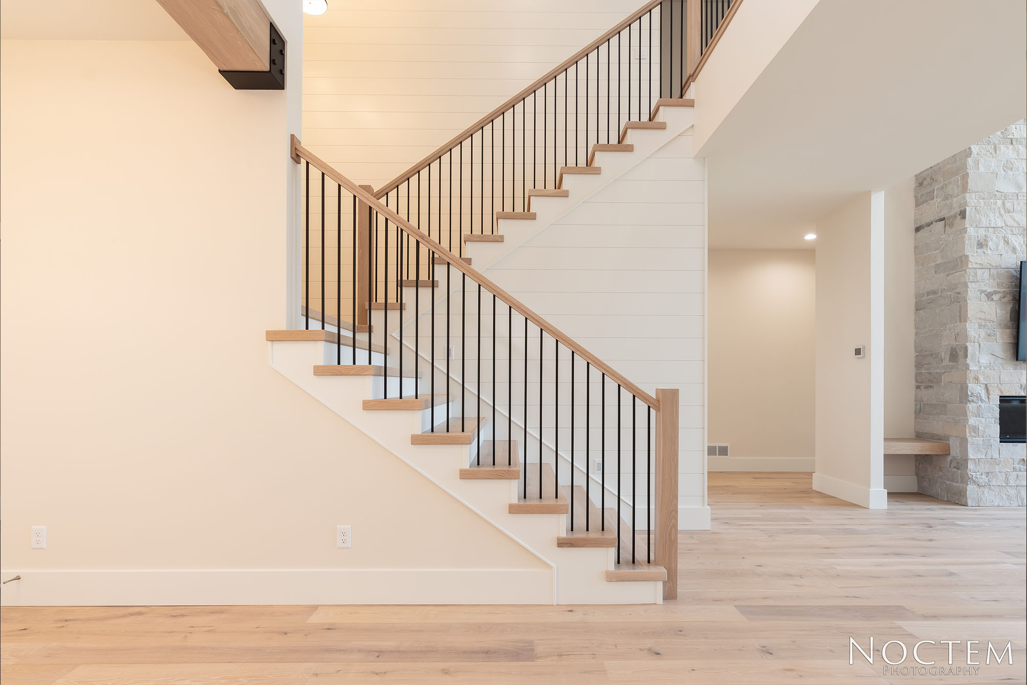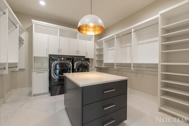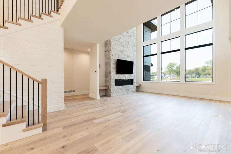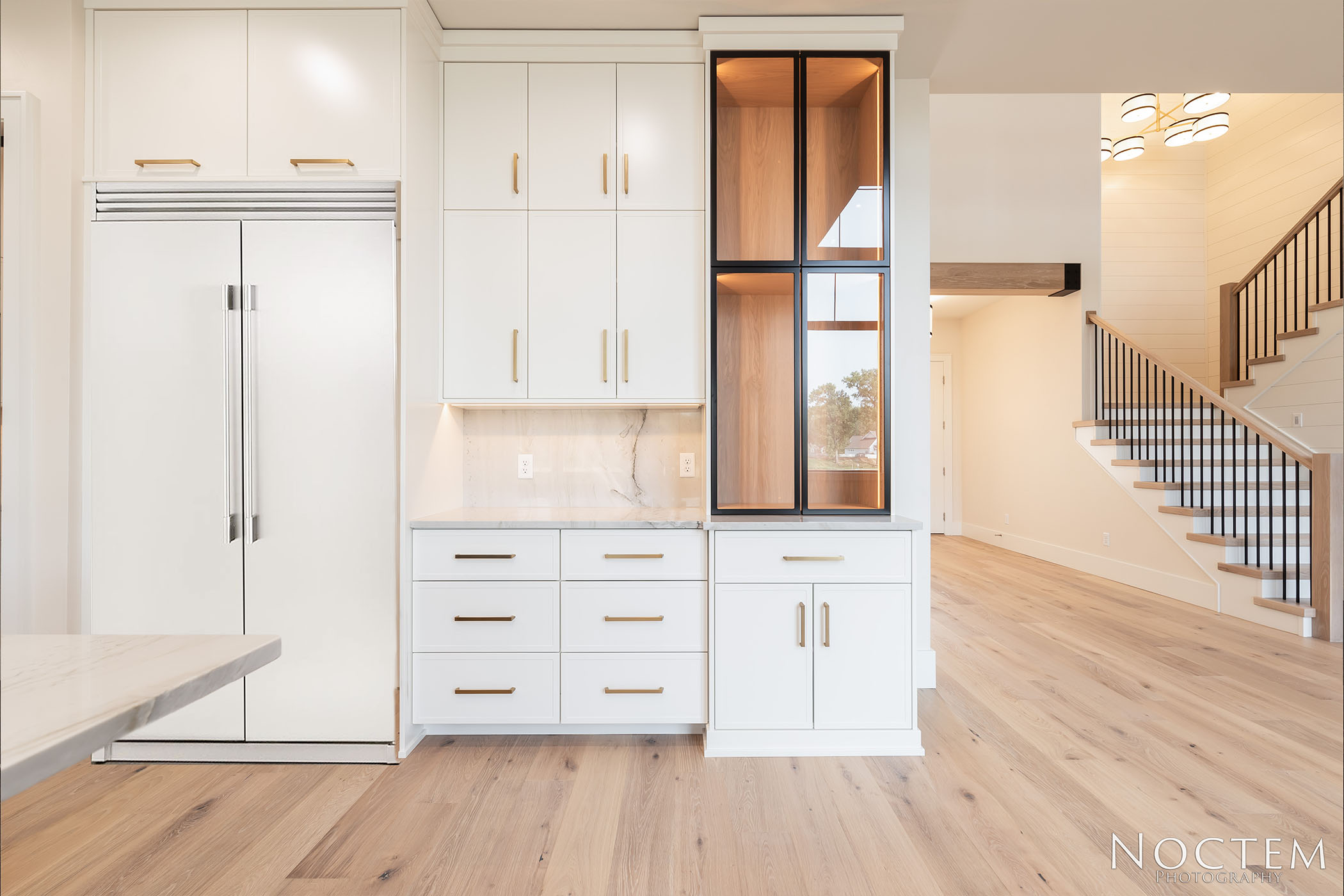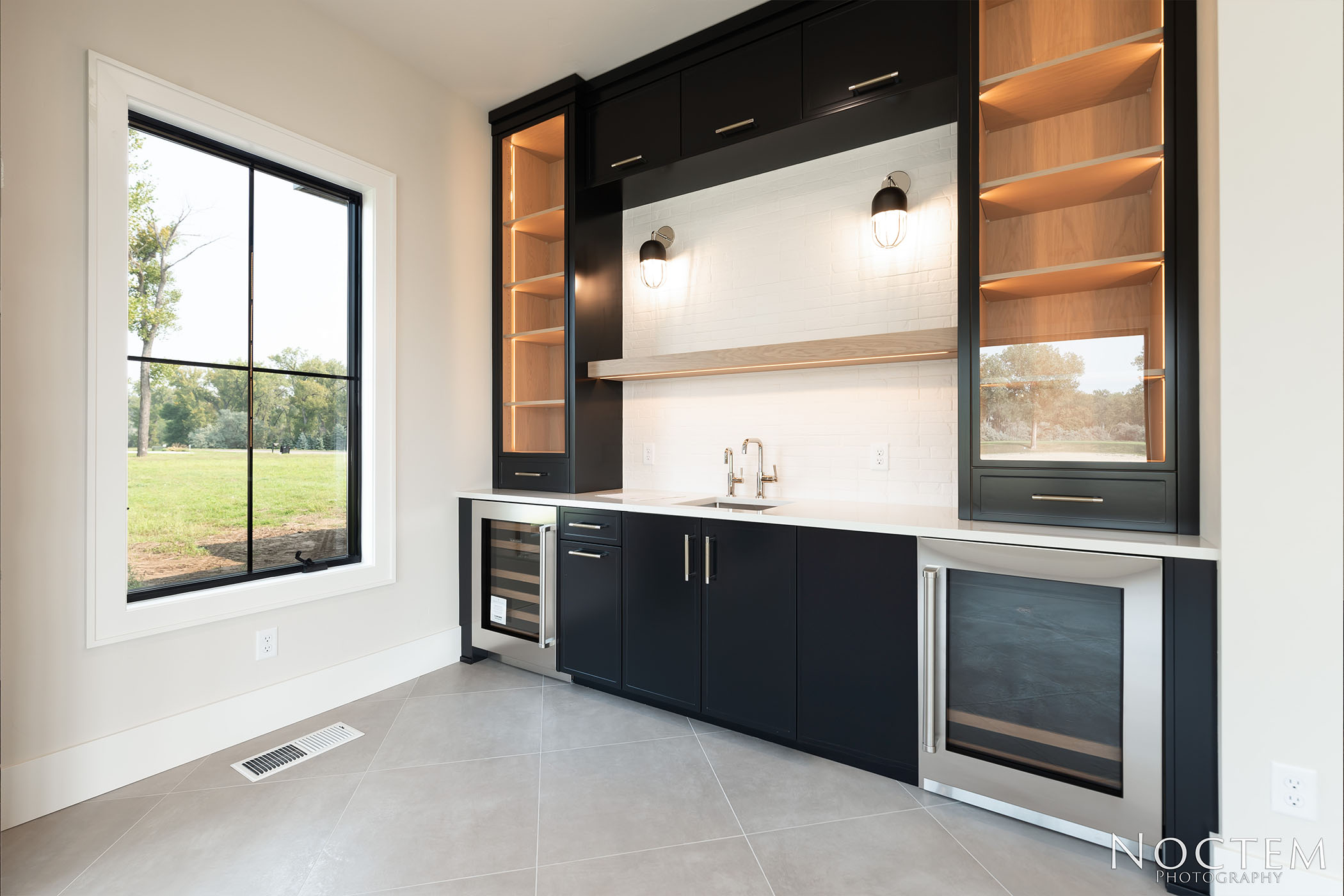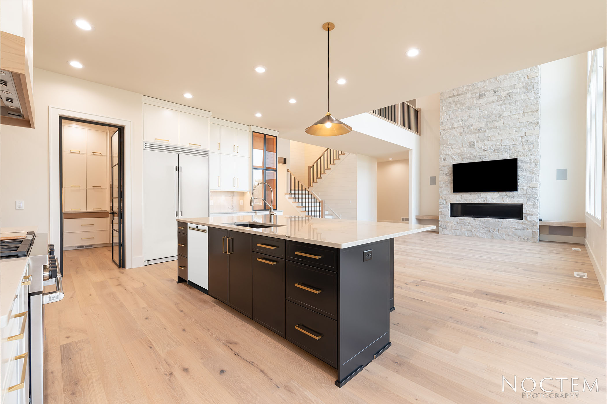 Showcasing a modern, custom home on a premier Bismarck bayfront lot—clean lines, upscale finishes, and expansive water views that bring contemporary style and relaxed comfort together beautifully.